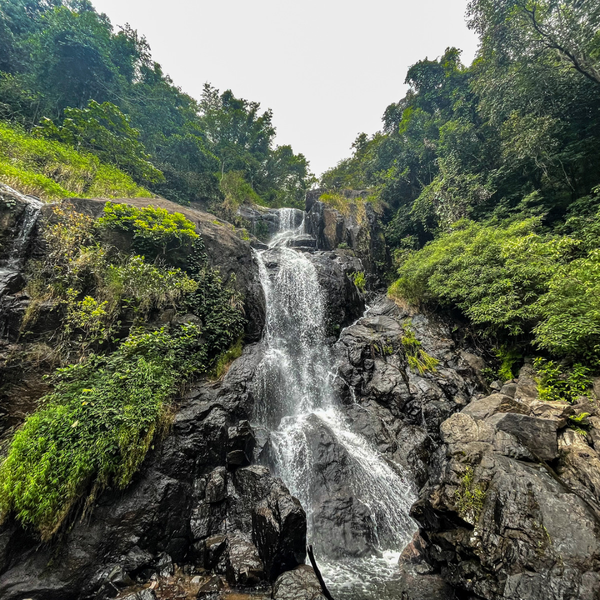 After a break at the summit, we begin our descent — carefully retracing our path down through forests and streams. But the descent has a surprise waiting: we stop by the majestic Meenmutty Falls — a 3-tiered, 1000-ft waterfall that roars from the rocks. It’s wild, unfiltered, and one of Wayanad’s most iconic natural sights.