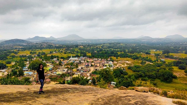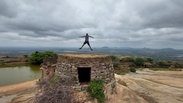 First walk is somewhat steep but on a rocky surface, walk on the left and upward till you start reaching on a level plane, with a mandapa-like structure at one end. The Tumkur district looms behind, and a fresh breeze nudges the air. It is the ideal place to get rested and take pictures.