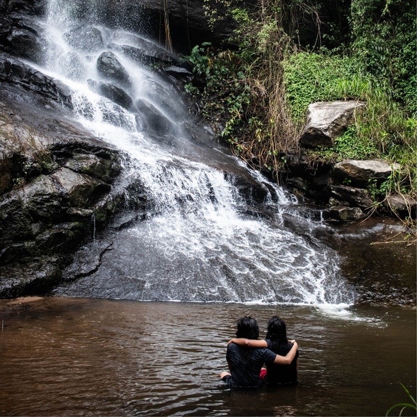 Once we check in and get settled, a freshly prepared lunch will be served at the campsite. After a bit of rest, we head out for a guided trek through the forest, crossing streams and winding through dense woods as we make our way to a hidden waterfall tucked inside the property. The trail is peaceful, shaded, and full of surprises along the way.