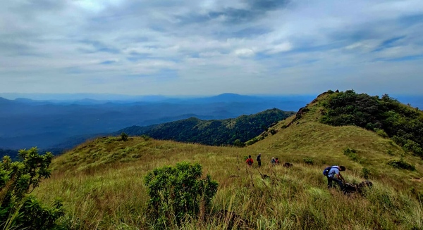 As you ascend, the lush greenery surrounding the trail gradually opens up to panoramic views of the Western Ghats. Along the way, you will pass through various terrains, including thick forest patches and open grassy hills. The forest area is dense and humid, but as you climb higher, the landscape becomes more open, offering breathtaking views of the distant mountains and valleys. The journey to the peak is both physically demanding and rewarding, with the summit standing tall at an altitude of 1,712 meters (5,620 feet) above sea level.