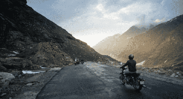 Our trail passes through a mythic road called Khardung La Pass, which is considered as one of the highest motorable roads in the world and it is 5359 feet (17,582 ft) high. Here we shall halt awhile, and take a brief meal of a sort, and get a drink, too, of the bleak wild beauty of the snowy Himalayan mountains, which tower all around you. Here is something to remember, read your cameras.