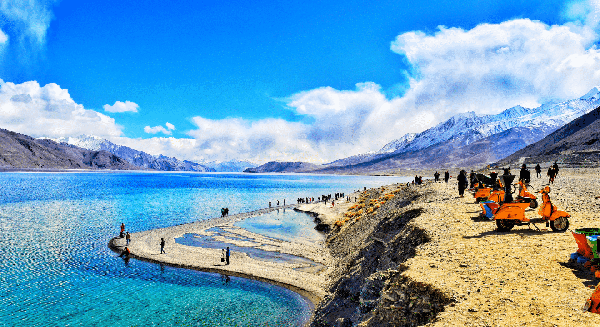 The route departs Diskit to drive through some of the most spectacular sceneries that include remote mountain passes, rugged up valleys and glittering streams to make us reach the stunning water body Quen Pangong lake made popular by Three Idiots, a Bollywood film.