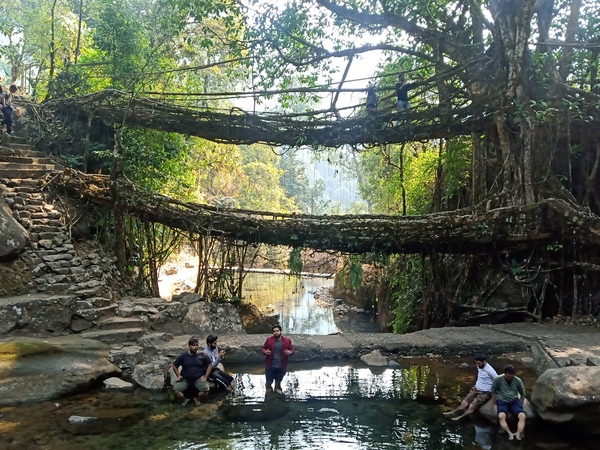 After getting super-punched with breakfast, we will travel to Cherrapunji, also known as Sohra. It is a high-altitude town in Meghalaya, beautifully dotted with living-root bridges and rubber trees. We will then drive to Tyrna. From here, we will trek to the famous Double Decker root bridge. Double-decker Root Bridge is the pride of Meghalaya.