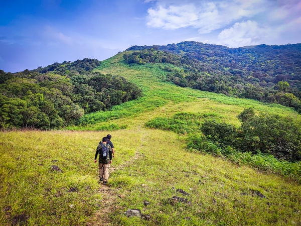 From our basecamp in Mallanduru, we begin the trek along a jeep trail that is comparatively flat and simple to navigate. As the trail gradually enters denser forests marked by tall, ancient trees that allow little to no sunlight to reach the forest floor, keep an eye out for the diverse array of flora and fauna. As the forest gets denser and the inclines steeper, make your way through a labyrinth of downed trees, twisting roots, and lush greenery.