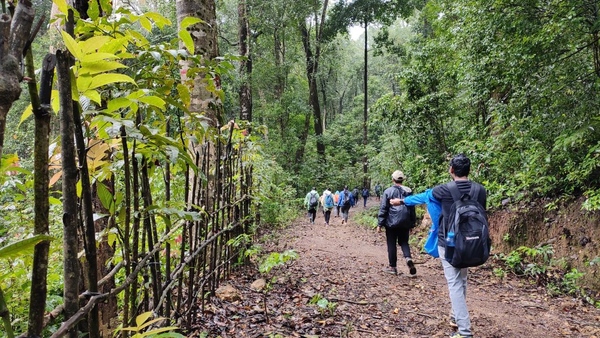 There are mainly five milestones that one needs to look out for on the Kodachadri trail. The first is an open field of meadow that pops up out of nowhere amidst thick forest trails. Numerous paddy fields later, the trail leads up to a house where a small surprise awaits the tired trekkers.