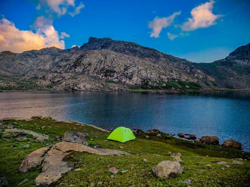 Walk across crystal-clear rivers, cross meadows speckled with wild horses, and arrive at the moon shaped Sundarsar Lake - which changes view with the direction you are facing. Camp on the peaceful water and do not miss the golden sunset and sunrise colors. It is like spending the night on another planet.