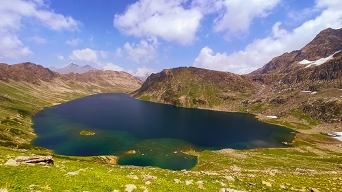 The same day trail has a gradual ascent through easy gradients and takes you to a spectacular Tarsar Lake. The turquoise water is visible after approximately four hours as it is surrounded by the magnificent mountains of Kolahai.